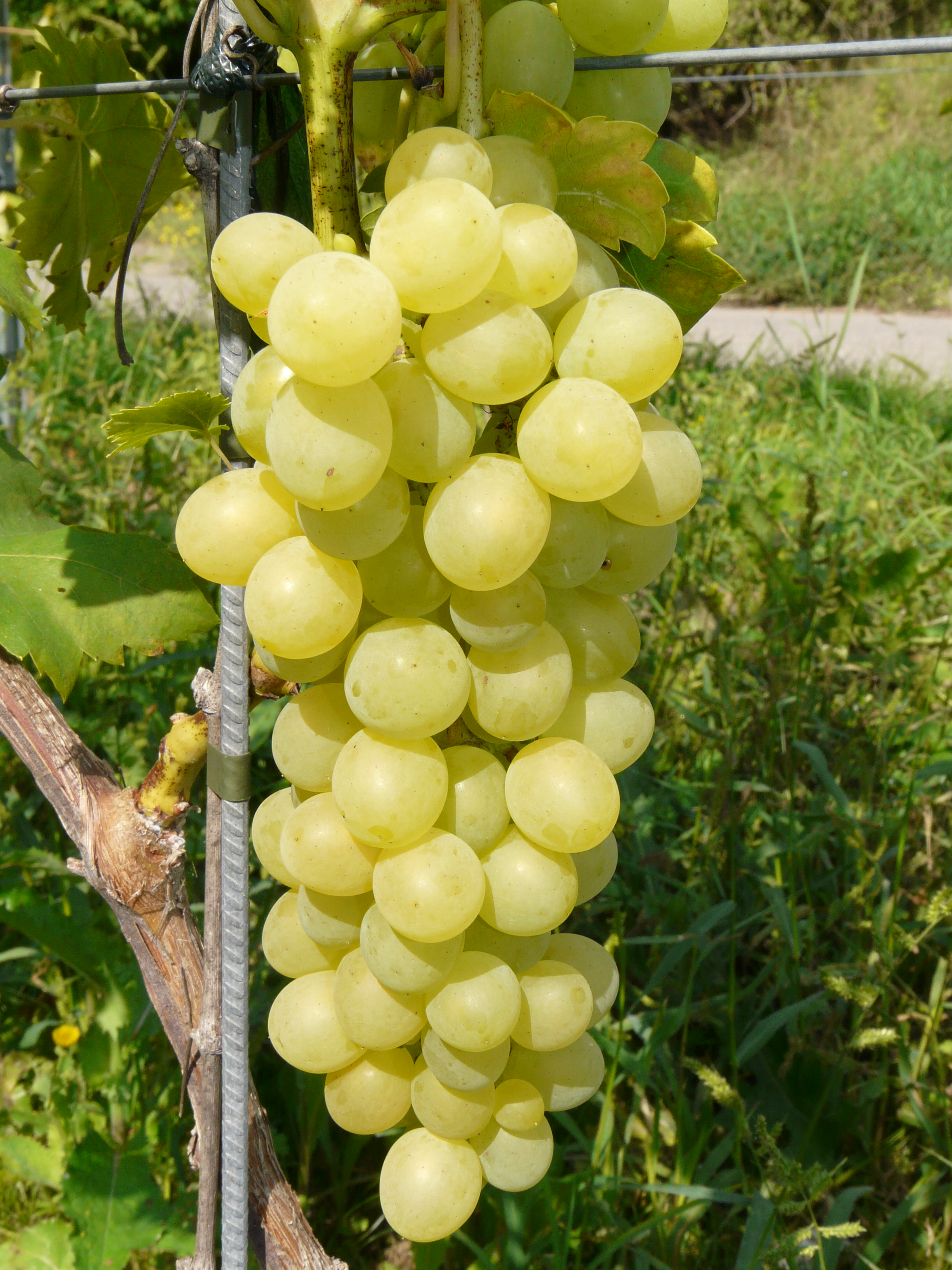 Die Sorte bildet schön große, locker aufgebaute und teils langgestreckte Trauben. Die Beeren sind groß, rund und bei Vollreife gelbgrün bis gelb gefärbt. Das Fruchtfleisch ist fest, saftig und angenehm knackig.